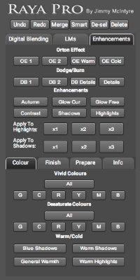 The Raya Pro consists of three functional categories; Digital Blending, Luminosity Masks and Enhancements. Lets take a look at each one and do an entire workflow while only using Raya Pro.